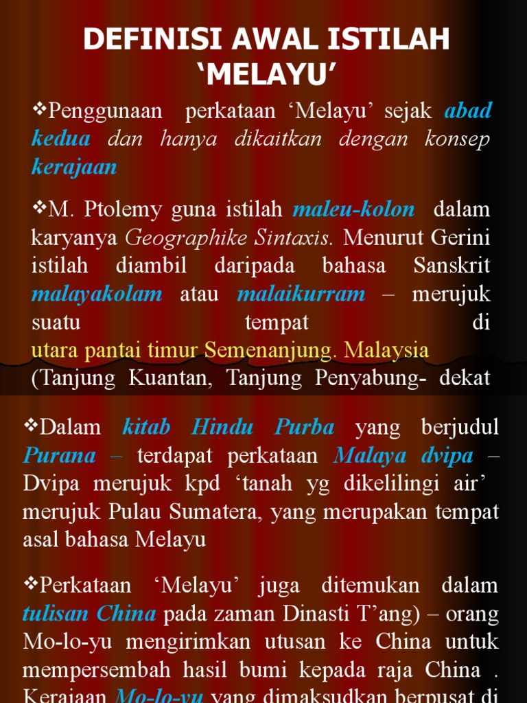 Ini kerana orang Melayu yang ada pada hari ini adalah suatu bangsa jadian yang terbentuk sejak abad ke-18 hasil daripada pengembangan identiti yang asalnya hanya terbatas dalam. View ASAL BAHASA MELAYUpdf from KOLEJ KOMUNITI SPL at Kolej Komuniti Bayan Baru Kementerian Pendidikan Tinggi. FKONSEP MELAYU Definisi awal istilah.